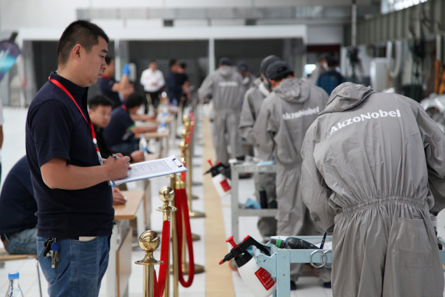 为了让参赛选手切实有所学习和提高,本次大赛设计非常专业且考核标准非常严格。在第一天的理论考核中,重点围绕喷枪使用操作工艺,干磨工艺和油漆喷涂工艺作业流程标准化以及日常维修中遇到的实际问题。