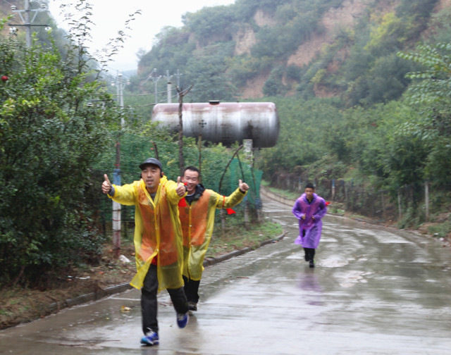 23日天没亮就下起雨来,但没有人退缩,这注定是不平凡的一天,大家纷纷裹上雨衣,再上路!