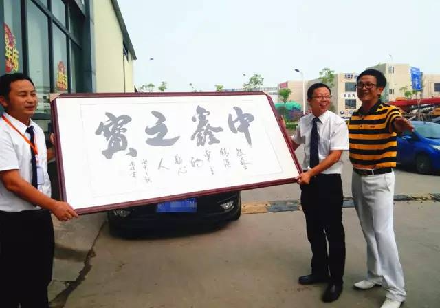 2016年10月28日,对中鑫之宝厦门店来说,是一个意义重大的日子,这天他们迎来了一块珍贵的牌匾。这是一幅字,上面“中鑫之宝“四个大字笔酣墨饱,苍劲有力。下面的小字”技艺精湛,车主的贴心人”气韵流畅,刚柔拙巧。对,这幅字是客户陈先生赠于中鑫之宝厦门店的,原来陈先生是中国书法家协会理事。