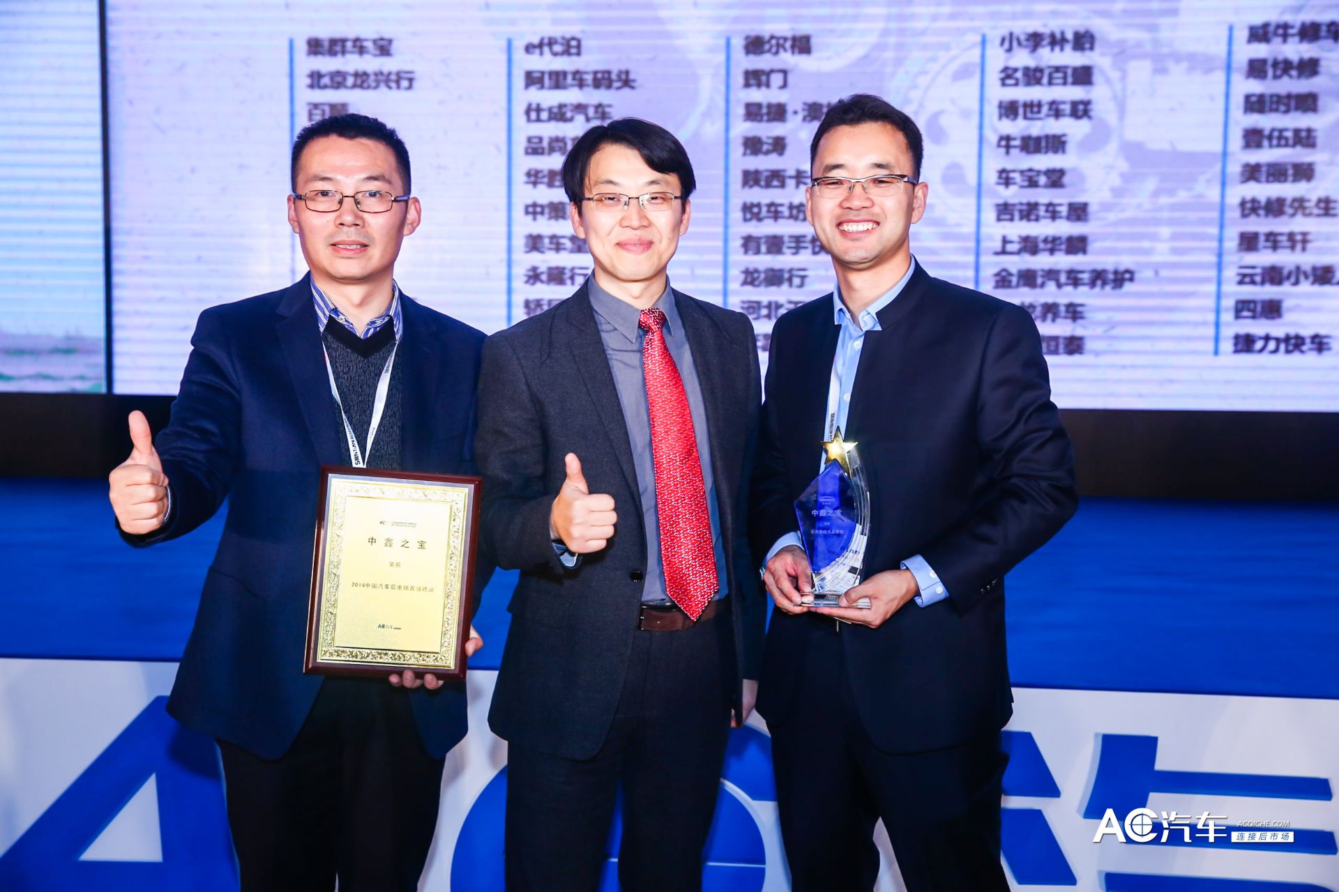 中鑫之宝作为一家豪华车维修服务企业,专业从事豪华车维修服务12年,已建立了覆盖全国12省60余家综合性运营店面。在汽车后市场近10000家门店中,凭借优秀的服务质量与管理团队脱颖而出,斩获“2016中国汽车后市场百强终端”荣誉称号及“最具影响力奖”!中鑫之宝董事副总经理杨永刚先生代表我司出席颁奖盛典!