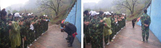 教官向学员和移动带队于朋鞠躬致谢,感谢大家拓展中的积极配合。