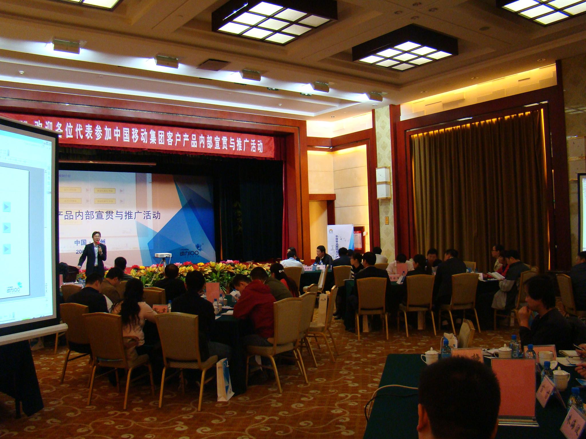 本次活动是由中国移动集团公司为了更好的发展移动公司现有业务,倡导并安排在全国各个省组织移动内部宣贯与推广活动,河南公司安排的时间是2009年10月19日至2009年10月20日,活动参与者主要来自河南各个地市分公司的行业经理、产品经理等,现场到达率达到100%。河南移动公司非常重视此次会议。执行公司的我们为了能顺利完成这项任务。在接到任务后立刻成立组委会,在执行中注重细节,细到签到纸的摆放,所有笔都朝一个方向;秉承服务至上的准则,想客户所想,做客户想做的。同时在河南移动公司大力支持下整个活动从准备到正式开始一切都十分顺利,最终会议得以圆满结束,现场效果极佳!充分展现河南公司贯彻集团公司的意图,以及向集团分公司展现河南公司的实力!我们也得到了移动集团公司领导与老师的赞赏。