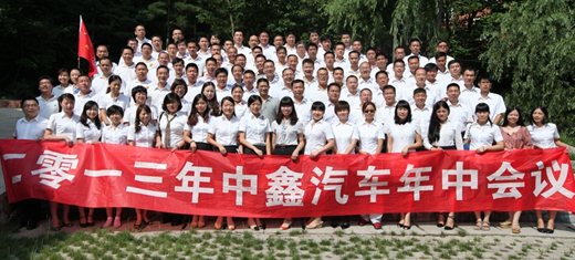 ——老田7月31日至8月4日,中鑫汽车2013年年中总结会议在洛阳白云山隆重召开。中鑫汽车总经理田玉峰,中鑫之宝常务副总经理杨永刚、北京店总经理卢玉萍、晋江店总经理朱娣、广汽丰田中鑫迎宾路店总经理左康立、广汽本田郑州北环店总经理王波、西安店总经理白永伟、福州店总经理杨奎玉、中博店副总经理路团伟、花园店副总经理兼技术总监牛宏涛、保险公司常务副总经理兼河南省分公司总经理曹风奇、太原店副总经理陈建斌、济南店副总经理李绍祥、赫尼西豪华车展厅销售总监朱越伟、路特斯展厅总经理王梦、广汽本田洛阳迅利4S总经理助理王奉敏,以及中鑫之宝店面、4S店系统的115位核心管理人员参加了此次会议。