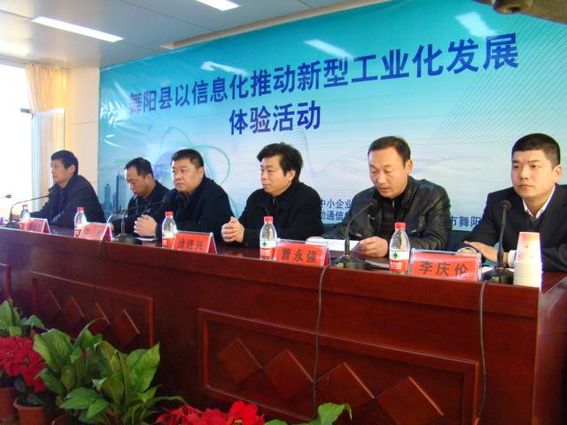 2010年12月7日上午9点在漯河市舞阳工业和信息化局4楼会议室举办了:漯河舞阳以信息化推动新型工业化发展体验活动。漯河市工业和信息化局领导,漯河市移动公司相关领导,舞阳移动公司相关领导出席本次会议。工业和信息化局领导做重要讲话。