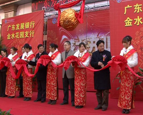 2010年12月16日星期四上午11点18分,迎着凛冽的寒风,广东发展银行郑州分行行长顾雪金,郑州金水花园支行行长孟海娇等领导参与了广发行金水花园支行的盛大开业剪彩仪式,庆典现场礼花四溅,金球启动,伴随着音乐和礼炮声,所有嘉宾走进了徐徐打开的金水花园支行大门。