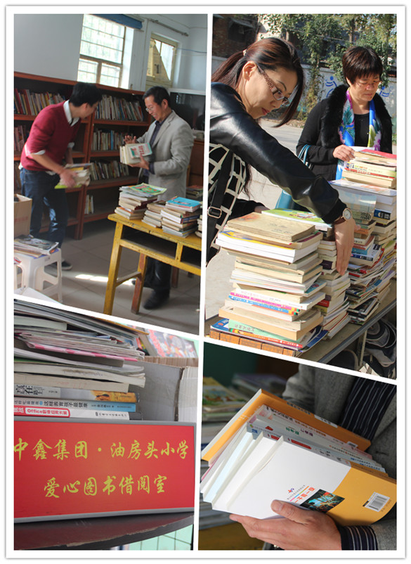 集团同事所捐书籍,中鑫编辑部经过简单筛选后全部捐赠到辉县油房头小学。中鑫编辑部几经周折,通过辉县爱心人士张新雷先生牵线搭桥,才联系上了这所位于城乡结合部的学校。目前,市区学校不缺书籍,山区学校因被过度关注也不缺书籍。经过前期探访和询问,中鑫编辑部发现该学校对书籍真正有需求。
