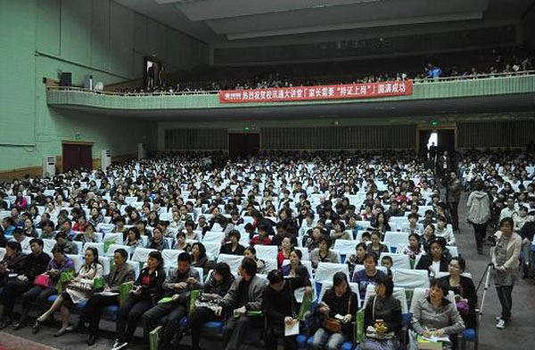 由于是针对学生家长就学生教育问题进行的讲座,安阳市教育局及安阳移动配合邀请了1800名家长,而实际到场的人数超过了预期,整个会场座无虚席,在二楼还有站着听讲的。讲座中还安排了与会家长提问的环节,孙教授对家长的疑惑进行一一作答,并在讲座结束后,很多家长拿着孙教授的书排起了长龙,等待孙教授签名并针对自己孩子突出的问题进行了咨询。
