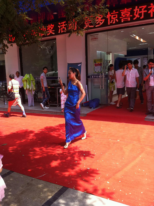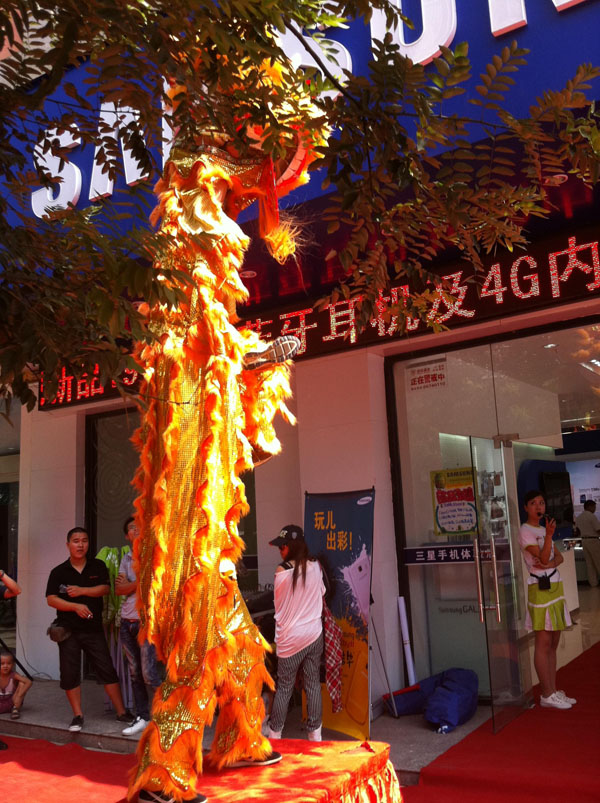 为了庆祝这喜庆的日子,现场我们采用了舞狮表演,锣鼓喧天的伴奏下,精彩的舞狮表演吸引了路边行人驻足,并迎来阵阵掌声。主持人的细致介绍配上时尚的模特走秀新款手机展示让驻足的人更直观的了解到三星手机的功能,火辣的舞蹈让我们体会到了三星手机的科技感。