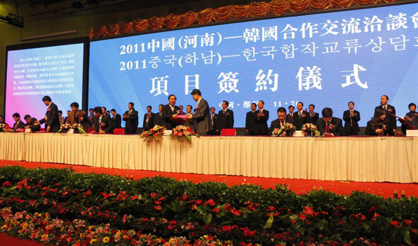 2011中国(河南)---韩国合作交流洽谈会开幕式暨合作项目签约仪式完满落幕 发布日期:2011-12-07 点击次数:8454