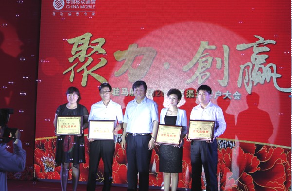 2012年5月8日上午8点,“驻马店市移动公司2012年渠道客户大会”在驻马店建苑大酒店拉开帷幕。本次表彰大会以“聚力•共赢”为主题,对2011年业绩突出的优秀经销商进行表彰。驻马店市移动公司总经理刘冠军先生亲临现场并发表讲话,他对驻马店市移动公司2011年业务发展表示肯定,也对2012年业务发展尤其是TD终端销售提出了更高的要求和期望。