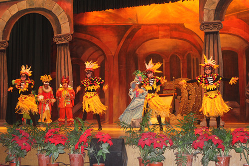 当日,演出会场内坐无虚席,甚至走道上都挤满了人。欢快且搞笑的情节把孩子们逗得哈哈大笑,皇帝穿着“新装”与大臣一起巡游时,小朋友们挥舞起小手与演员互动,当看到所谓的“新装”实际什么都没有时,诚实、勇敢的的小朋友们高呼起了“他没有穿衣服……”与“虚伪的大臣们”你一言我一语的对驳着,结果皇帝相信孩子们说的才是真的。临近结束时所有的演员一起走上前台跳舞,小朋友们也跟着欢腾起来,于是整场演出一片欢声笑语之中圆满的落下了帷幕。