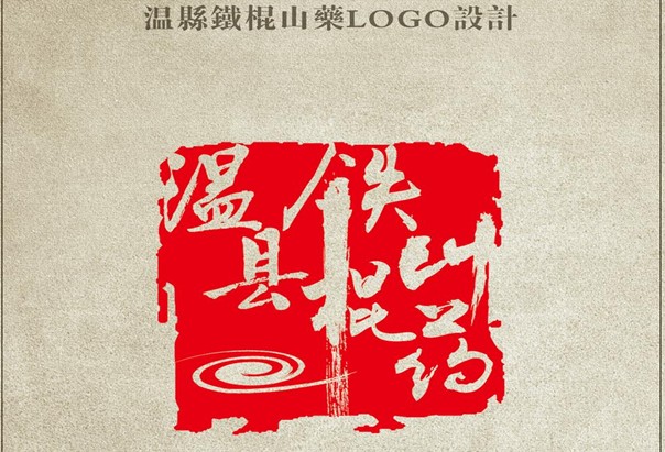 字体分为两部分,左上方“温县”二字温润自信,极具时代特色,充满朝气;右侧“铁棍山药”以创意字体为主体,“铁”与“棍”偏旁上下一体,“山”字两侧笔画较粗,中间略细,意指温县铁棍山药在太行山下、黄沁河冲积平原下,根深叶茂,绵延无尽,书法字体笔画刚劲有力,突出铁棍山药质坚、细腻的特性。