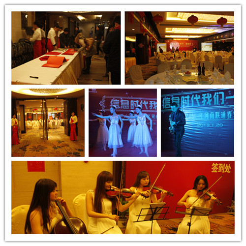 当天下午的三点钟,所有的物料和现场布置都已经准备就绪,五点时,就已经有嘉宾前来签到,每个前来签到的嘉宾都在悠扬的小提琴的音乐声中走进会场。六点钟时,在主持人甜美声音的开场白背景下,活动准时开始。在流程的把控上,我们在开篇安排了领导讲话,中间穿插的有小提琴表演、芭蕾舞、萨克斯独奏……这些高雅的节目恰恰映衬了此次参会嘉宾尊贵的身份,使河南联通的高层和省内的知名媒体有一个更加融洽沟通的氛围。在每个节目结束的空档,我们还安排了抽奖环节,使前来参会的嘉宾不会空手而归,最后的一等奖是一台iphone5手机,把这场活动推向了高潮,掌声不断,看到现场火热的场面,我们的心里非常欣慰,毕竟去做一场活动,讲究的就是活动本身产生的效果和客户的满意程度!