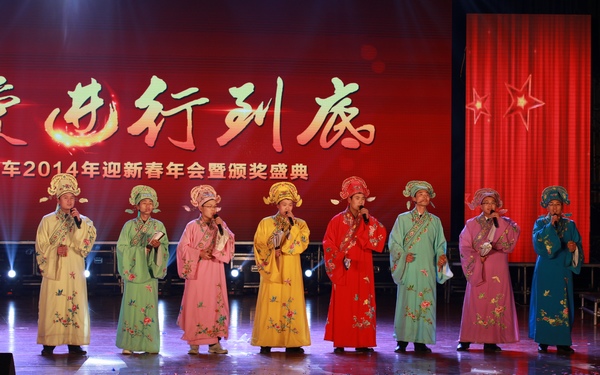 此次年会公司还为员工提供了一个展示自我和团队的舞台,各部门的伙伴们带来了形式各异、让人目不暇接的表演。喜气洋洋的开场舞蹈《恭喜发财》博得了阵阵的叫好声;中博店配件部带来的歌伴舞《配件好声音、相亲相爱一家人》让大家对平日里沉默寡言的配件部人员刮目相看;市场部开发部的话剧《鑫馨知我心》妙语连珠,默契的配合使现场气氛十分轻松活泼,为晚会增添了许多鲜活的色彩;广本团队带来的小品《销售顾问,你幸福吗?》其滑稽幽默的表演和经典搞笑的动作,带动了全场的气氛,并充分展示了广本团队的搞笑功底;花园店宝马中心的八大才子带来的快板《悦动我鑫》让我们充分的感觉到身边的每一位同事都可能是深藏不露的高人;中博市场部带来的舞蹈《LOVE YOUNG》更是动感十足,活力四射;中鑫之宝技术中心的舞台剧《中鑫颂》表达了车间技师们对中鑫的爱与执着……