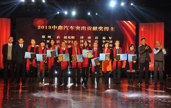 过去的2013,在中鑫汽车全体员工的共同努力下,公司取得了喜人的成绩。同时在表彰大会上对于2013度中鑫汽车优秀个人奖、2013年度中鑫汽车优秀管理者奖、2013年度中鑫汽车优秀小部门奖、2013年度中鑫汽车优秀大团队奖、2013年度中鑫汽车优秀管理者、2013年度保代公司突出贡献奖和最佳销售奖、2013年度新秀店面奖、2013年度客户满意飞行检查奖、2013年度突出贡献奖、2013年度优秀店面。给予了肯定表扬和奖励,以此来勉励全体员工在2014年能够更加努力的拼搏奋斗。