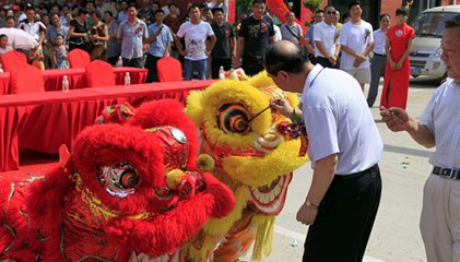一支热情的采茶舞拉开了开业仪式的序幕,特意编排的舞蹈加上特制的茶壶造型舞蹈道具更加贴切了茶的文化寓意。皇家礼炮打出了好彩头,寓意着生意兴隆红红火火,贵宾们在罗马柱鲜花的簇拥中共同剪彩,随后领导为狮子点睛,一点左眼---生意兴隆、二点右眼---财源广进、三点天灵---前程似锦,点睛为唤醒狮子,并带给它们散播幸福与吉祥的能力,寓意繁荣富贵,生意兴隆!梅兰竹菊人体彩绘的精彩走秀更为现场增添了不少人气。
