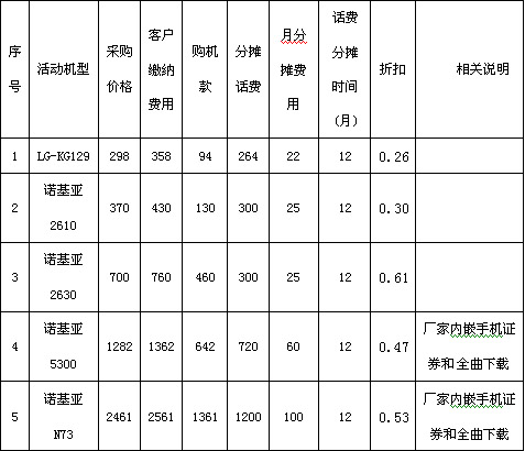 五、活动机型:预存话费折扣购机(仅包括我公司代理机型)