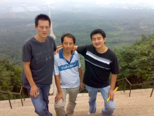 也许是心情的问题,感觉今天的天气格外的晴朗,我们租车直达山脚下……远离喧闹的城市,我们的情绪一下子就激发出来……看着远处绵延的登山阶梯———登上去,把大山踩在脚下,成了我们前进的唯一目标。过程是缓慢的、艰辛的,但我们的心情是愉快的,在一路的谈笑中,我们渐渐达到了顶峰,在最后两个台阶上我们合影留念,就像司歌中唱的……跨越……跨越巅峰……,我们就要把大山踩在脚下了。