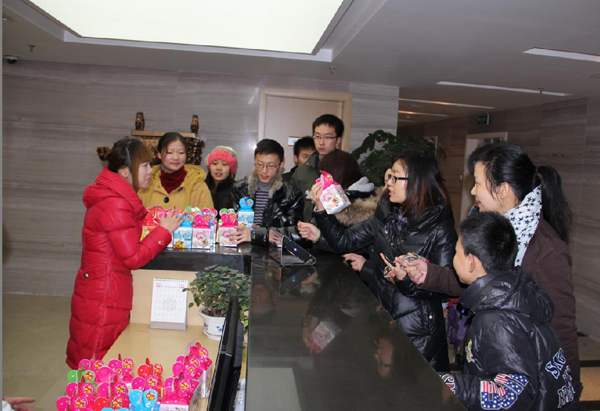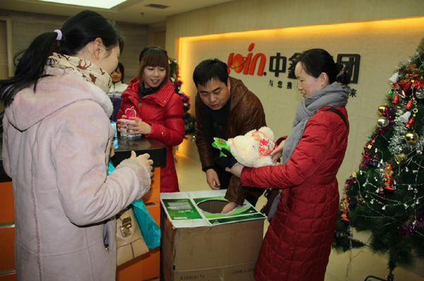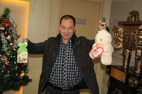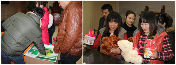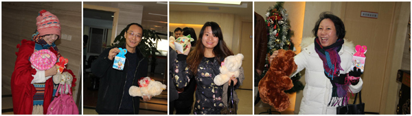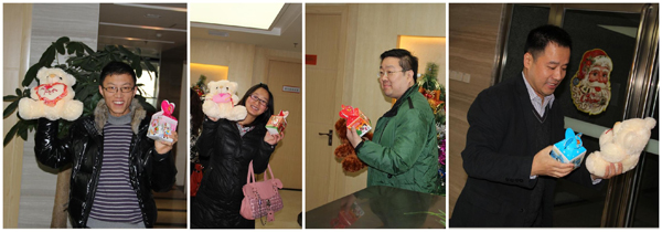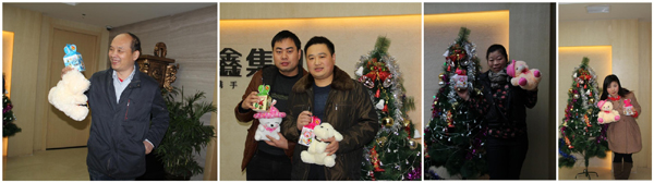 秉承创新的工作精神,行政管理部对活动严格保密,在平安夜当天早上为员工送上了包装精美、寓意平平安安、团团圆圆的“平安果”,同时,每位员工还可以抽取可爱的毛绒玩具,给辛勤耕耘的员工送上一个小小的惊喜,在寒冷的冬日送上丝丝温暖。拿到礼物的员工眉笑颜开,并兴奋的在圣诞树旁合影留念。