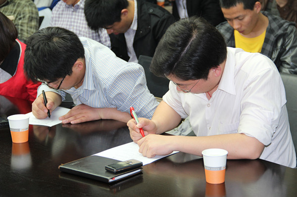 为了提高会议效率检测会议效果,本次业务例会的最后一项内容即为:对所有参会人员进行会议内容了解、掌握程度的书面测试。与会的部分员工是刚走出校园大门的大学生,对本次考试有着相对闲适从容的心态,但也有部分员工都已经久别校园生活多年,乍一听要考试就表现的较为紧张。