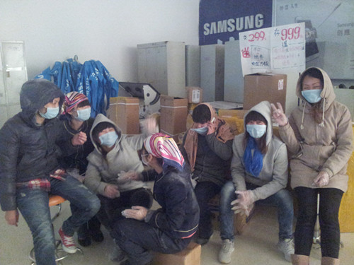 她们在店长的分配下大致地进行分工合作,迅速购买了口罩等必要的劳保物品后,紧张地投入到清扫工作中去。至尊店的店员大都是85后乃至90后的年轻团队,又以女孩居多,为了自己的店面能够尽快地投入营业,她们明白能早一天经营就能减少一天公司的损失。这个时候的她们抛却了爱美之心,忘记了自己的性别,争抢着干最累最脏的活,恰逢省会郑州迎来了入冬以来最大的一场寒流,气温骤降,寒冷的天气里少不了磕磕碰碰,辛苦程度可想而知。