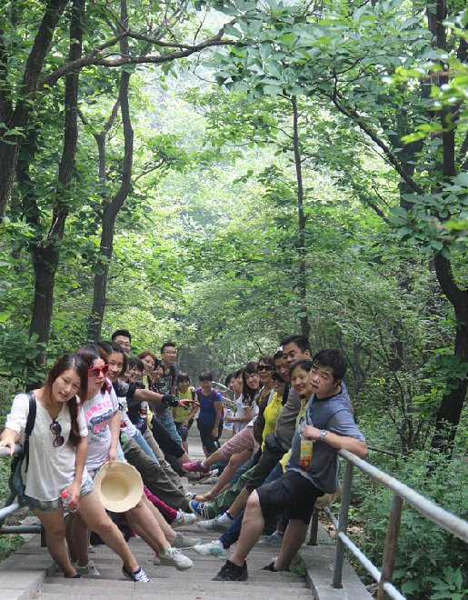 ,集团总部办公区组织的“活力中鑫·穿越嵩山”一日游顺利结束。此次活动共有35人参与,由专业教练统一带队。爬山所选路线为“嵩阳书院—野猪坡—峻极峰”。其中峻极峰海拔高度为1450米,为嵩山最高峰。沿途路势陡峭,多为山路和石坡,上午9点登山开始,下午近6点才结束。