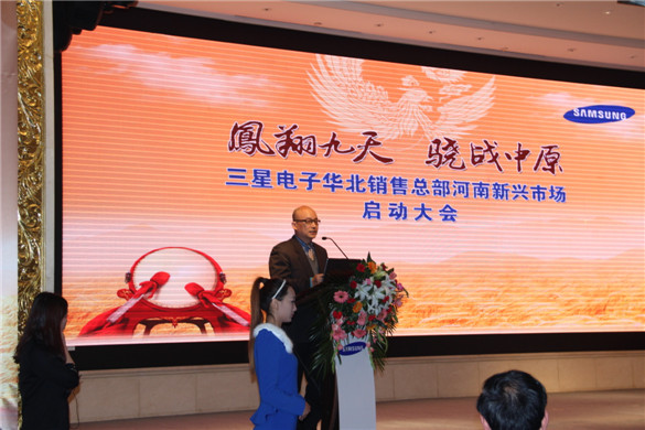 2014年1月9日,来自河南省各地的经销商代表齐聚绿城郑州永和伯爵国际酒店,参加“凤翔九天,骁站中原”三星电子华北销售总部河南新兴市场启动大会。三星电子大中华区华北销售总部总经理晋渊铎、PM部长朴浩庆、三星电子大中华区零售管理部长丁丰、三星电子大中华区移动通讯RD渠道部门长唐玉斌、RD渠道产品总监李永春、运营总监王东、销售总监夏广富以及河南中鑫企业集团有限公司副总裁、河南中鑫通信有限公司总经理陈剑、河南中鑫通信有限公司诺鑫分公司曹永亮等重要嘉宾出席会议,参会经销商多达500余家。