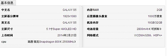 三星S5的基本信息