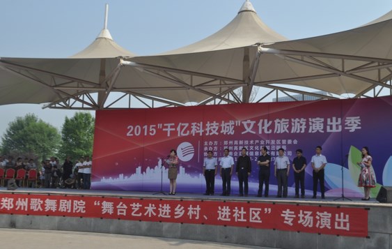 6月23日上午,由郑州高新技术产业开发区管委会,郑州高新区文化新闻出版局,河南企汇网信息技术有限公司共同举办的“千亿科技城”文化旅游演出季,在高新区中心广场正式开幕。此活动全权由中鑫传媒策划和执行的!