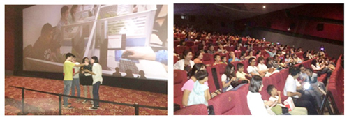 秉承客户至上的原则,以宣传公司产品为目的。中鑫电商分公司于2015年9月19日在成龙影院组织微小店随购商城客户观影活动,活动于18点开始, 21点圆满结束。电商各个同事都认真负责,现场客户情绪异常高涨,踊跃参与活动,让本次活动几度达到沸点。