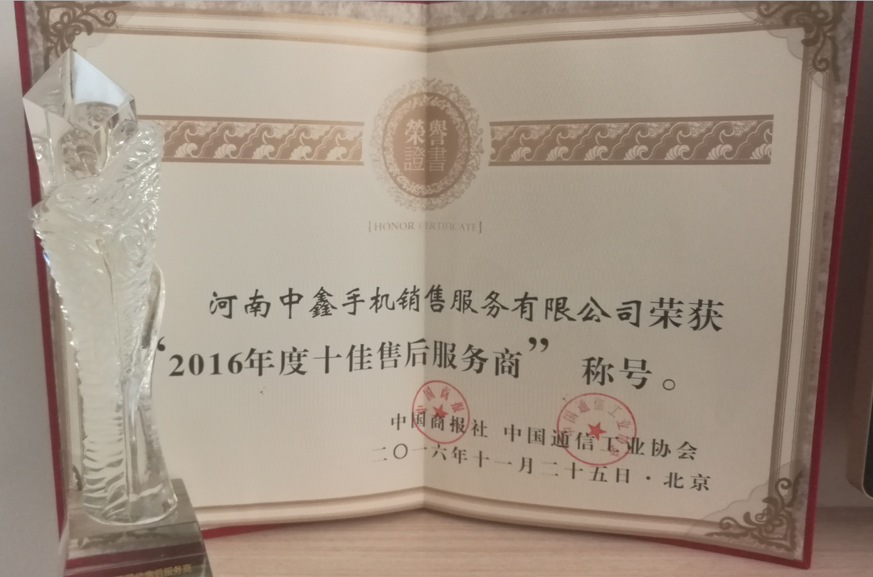 中鑫手机荣获2016年度十佳售后服务商——不忘初心、继续前行 发布日期:2016-11-30 点击次数:12385