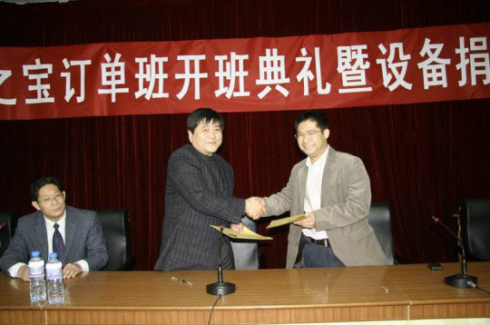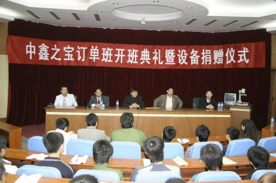 最后,王佩国副院长讲话,他首先对我公司领导的到来表示欢迎,对我公司给汽车工程系捐赠的宝马、奔驰、奥迪发动机设备表示感谢,同时祝贺中鑫之宝订单班开班。随后,他对同学们提出了两点要求:一、希望同学们在面对社会、工作、生活时,要培养一颗感恩之心;二、希望同学们把校园文化生活融入到工作中,发扬吃苦奉献的精神。