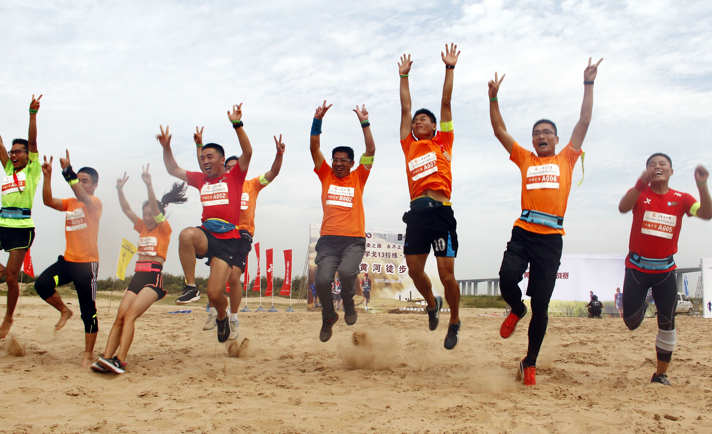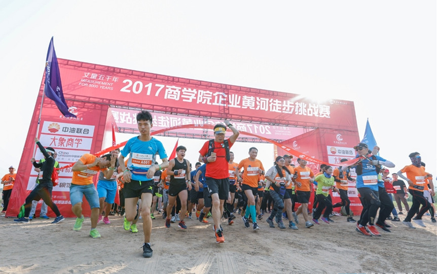 9月23日至24日,丈量五千年——2017商学院企业黄河徒步挑战赛在黄河南岸桃花峪大桥滩地激情开赛,赛事路线全程55公里,有近千名来自全国各地的长跑健将及爱好者参与比赛。