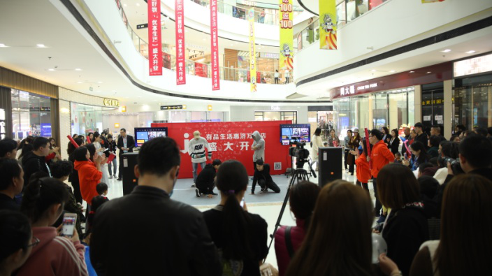 接下来炫酷的街舞节目,四个小鲜肉为大家带来了耳目一新的视觉盛宴。丰富多彩的开业促销活动按部就班进行,物美价廉的2 0 1 8换购活动为初次接触JC有品理念的顾客带来了入门级的购物体验。