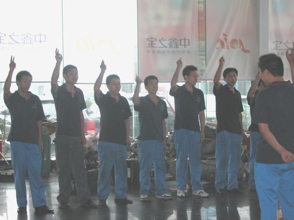 (六)、奥迪车间用心喊出了队呼“平凡铸就伟大,细节决定成败,真心服务从我做起!耶!”