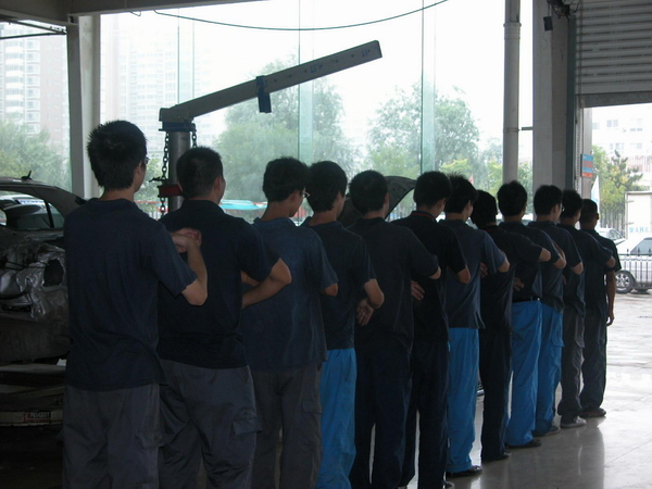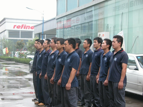 (二)、宝马车间在高唱公司版《团结就是力量》,雄壮有力,很有气势!歌词如下: