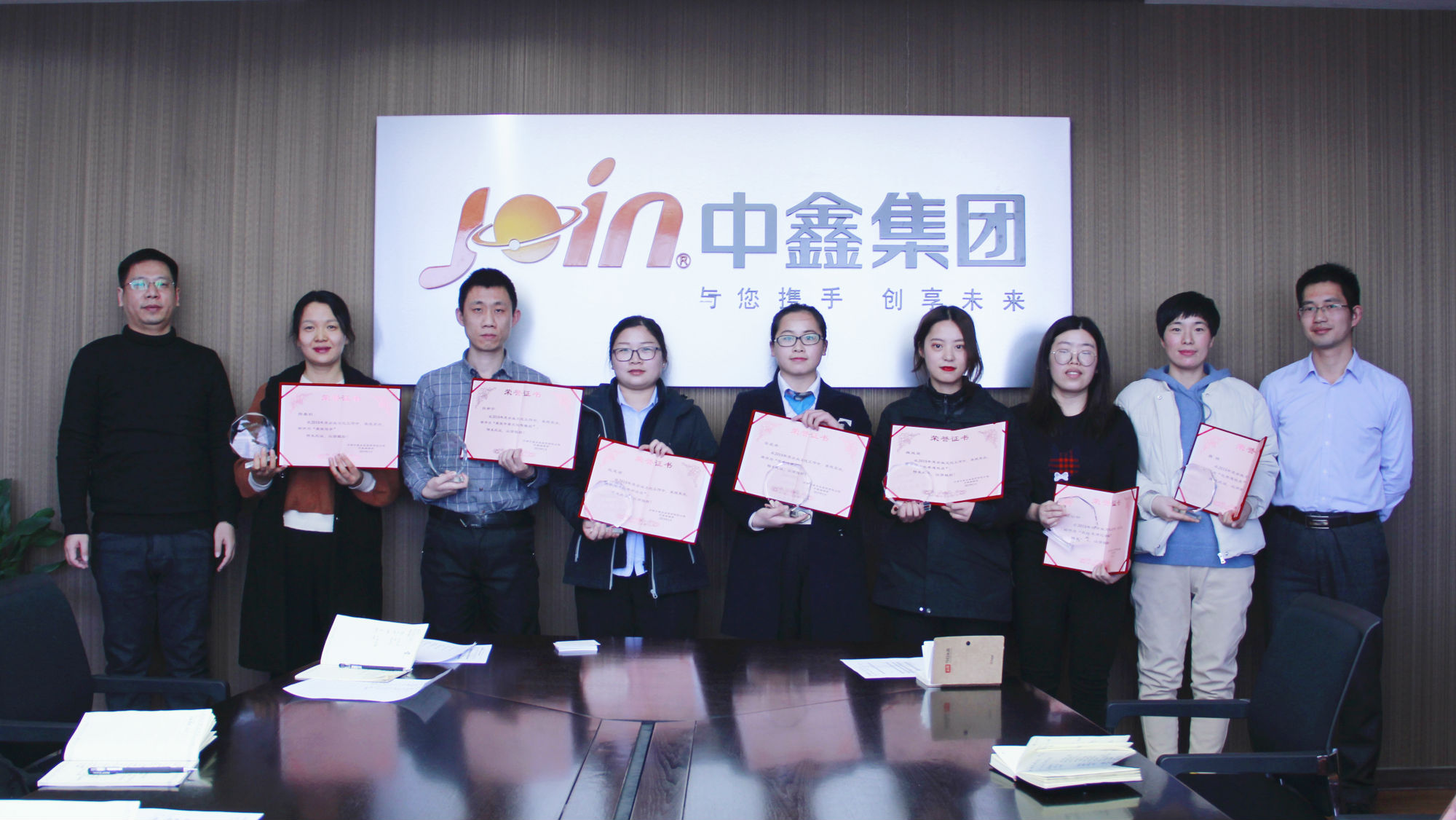 本次会议对在2018年企业文化工作中表现突出的人员进行了表彰,评选出5位优秀组稿人,7位优秀作者,参会的集团领导为他们颁发了奖杯和荣誉证书。