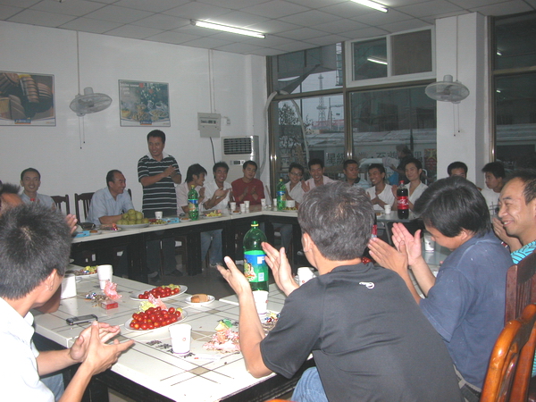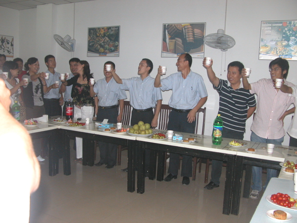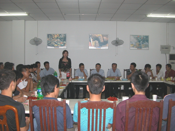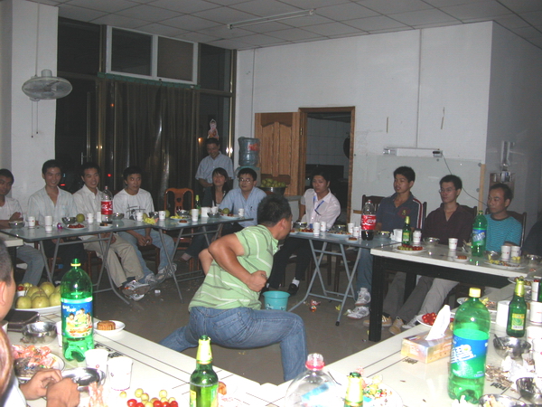 “月上柳梢头,人约黄昏后”,2008年9月4日,中鑫之宝2008年新入职员工喜聚餐厅共迎中秋。当我们踏进餐厅的时候眼前突然一亮,整个会场布置的井然有序,瓜果、梨枣、月饼等各类点心切块装盘摆放整齐有序。19点茶话会正式开始。这才发现公司里原来藏龙卧虎,人才辈出呀!这不,马上就有人愿意为我们的活动增添色彩,首先就是运营中心钣金车间的孟庆福为大家献上的《忘情水》,别看平时他们每天都跟机械打交道,工作起来游刃有余,今晚这首《忘情水》唱出了在场男同胞“多情自古空余恨,好梦由来最易醒”的心声,用一杯忘情水,忘却那收不回的爱,忘却一生的伤悲,那粗犷混厚的歌声赢得了场下观众阵阵掌声。每个部门都用不同的方式表达了他们的心声,其中市场部朱丽霞和刘强唱的《两只老虎》及海帅唱的《女人是老虎》让我们感受到老虎其实也可爱!杨锐的《女人花》唱出了女人似水的温柔。