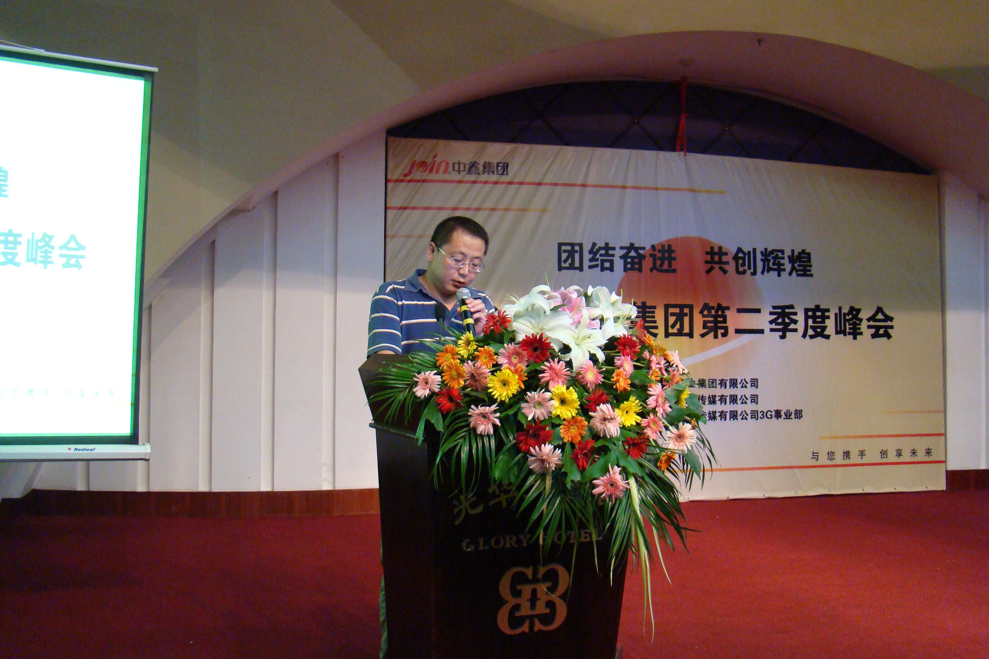 季总发表了慷慨激昂的开场致辞,首先肯定了各个分公司今年上半年的经营成绩,对人员半年来辛勤努力工作、拼搏进取精神表示感谢。季总指出整个集团上半年的业绩基本上是按年初集团制定的经营方针在稳步发展,经过全体同仁的努力,大部分公司都超额完成了年初制定的目标,风险控制在上半年经营工作中发挥了积极的作用,并对下半年的工作提出新的要求。