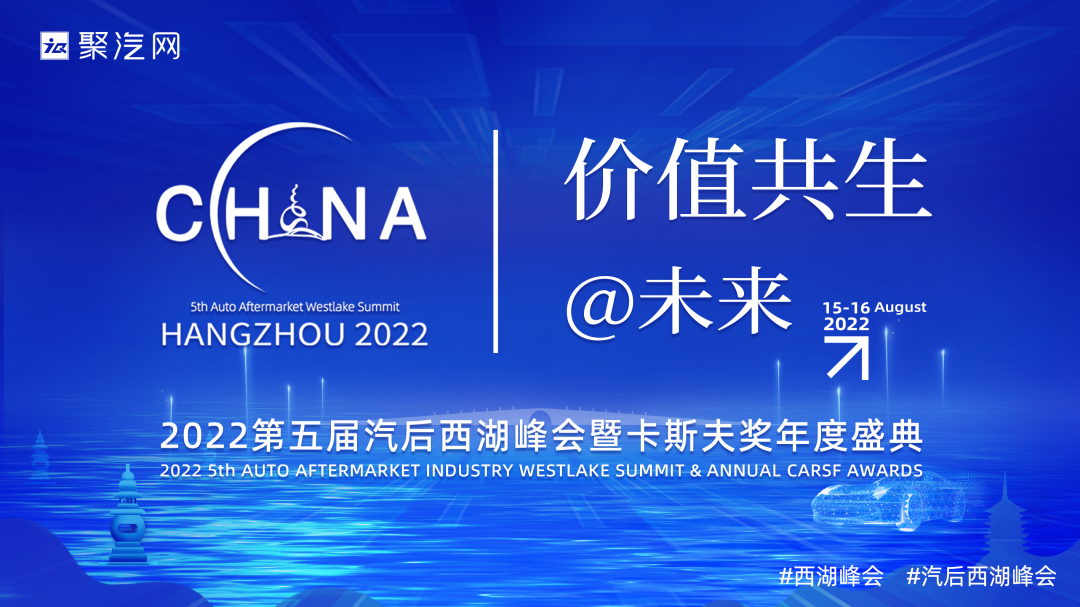 2022年8月15日-16日,由聚汽网、卡斯夫奖组委会联合主办的“2022年第五届中国汽车后市场西湖峰会暨卡斯夫奖年度盛典”在杭州丁兰君尚云郦酒店盛大举行。