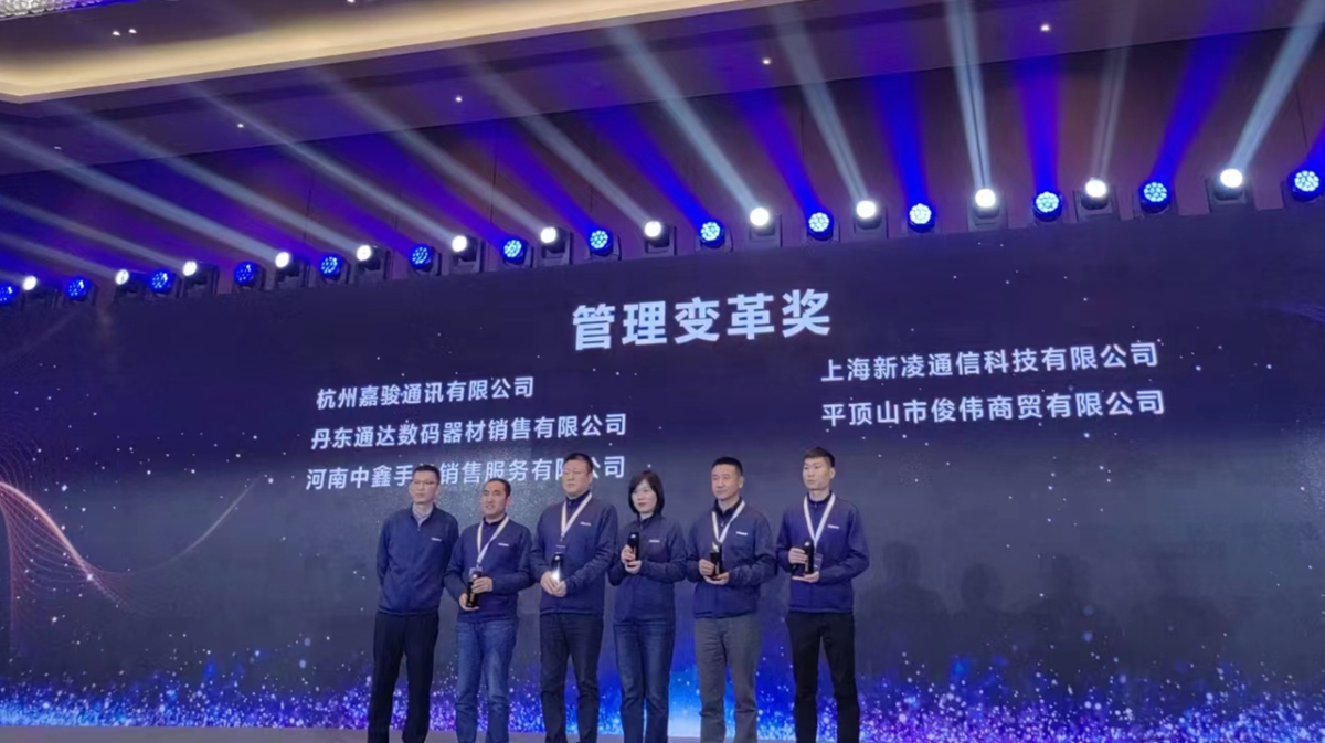 大会上,河南中鑫手机销售服务有限公司不负众望斩获三项大奖,分别是:由华为公司评选颁发的年度“中流砥柱”和“管理变革”奖,由河南代表处颁发的“2022年度优秀服务中心供应商奖”。