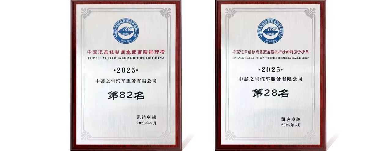 中鑫之宝汽车服务有限公司在2025中国汽车经销商大会暨百强排行榜发布盛典中斩获三项重要殊荣:凭借卓越的市场运营能力和前瞻性战略布局,跻身中国汽车经销商集团百强榜单即位列第82位,并荣膺年度“百强经销商集团”称号;在备受关注的新能源专项榜单中,更以第28位的亮眼成绩彰显了公司在新兴领域的强劲发展势头。