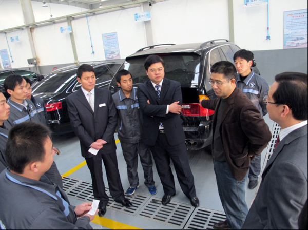 19日早晨8点,济南店周晨会准时召开,在晨会上老田同志与全体员工见面、发表了简短致词并颁发了周冠军锦旗。会后,老田同志等人在济南店副董事长毛杰、总经理王冬的陪同下进入基层、深入一线,来到各个部门了解工作情况,慰问一线人员并听取员工建议,先后走访了行政部、财务部、营销中心、奥迪车间、奔驰宝马车间、钣喷车间等,亲自深入到机修车间和钣喷车间观看工作流程、设备配置,并与车间人员切磋技术问题,亲切慰问员工们的生活,并对各个岗位的重要性给与了精彩点评性的指导。在营销中心电话招揽部门,老田强调,电话营销人员一定要培训,没有经过培训的员工,就像上战场不会开枪,必死无疑;在机修车间,老田嘱托两位主管一定要做好传帮带工作,并亲切地鼓励年轻的维修工人要养成良好的学习习惯,勤学多问,做好维修日记,一定要把青春的美好时光利用好;在钣喷车间,了解到客户对我们的喷漆的质量十分认可,老田提出,我们完全有能力把我们的钣喷业务做成一个亮点,超越同行,形成我们的一道靓丽风景。冬天来临,天气渐冷,老田特别嘱托一定要备好热水,不要让工人在打磨时候冻了手,区区小事,却充分体现了中鑫之宝一贯提倡的大家庭的互相关爱之情。