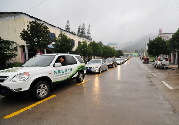 9月17日早上六点,各位车主在中鑫之宝中博店门外集结,绵绵秋雨并没有影响大家外出的心情,陆陆续续中十多辆会员车先后到位。分发好每辆车的车贴和对讲机,中鑫之宝客户经理谷雨向大家讲解了出游安排及注意事项,交通广播的工作人员向大家介绍了对讲机的使用方法。随后,浩浩荡荡的“鑫行天下”车队出发了,车队先到达了林溪湾香堤谷公园用早餐。用完早餐后,精神头也足了,八点整,在两辆工作车的前后护卫下,车队沿绕城高速、京珠高速、一路顺利的抵达目的地。沿途通过车与车之间的对讲机联络,方便而快捷的确保了车队的安全行驶。