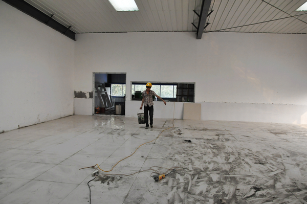 日,西安店主体结构封顶,工地一片繁忙,大小工程机械同时施工,内装全面开始:二楼客户休息区和办公区域开始分割进行室内精装修;一楼接待大厅和车间正在进行地面硬化;二楼餐厅和宿舍已经装修完毕,即可住宿;外立面干挂开始施工,预计