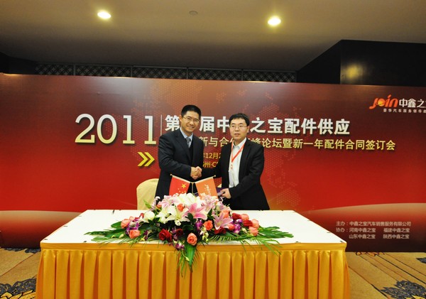 2011 第一届中鑫之宝配件供应渠道创新与合作高峰论坛在郑召开 发布日期:2011-12-31 点击次数:8130