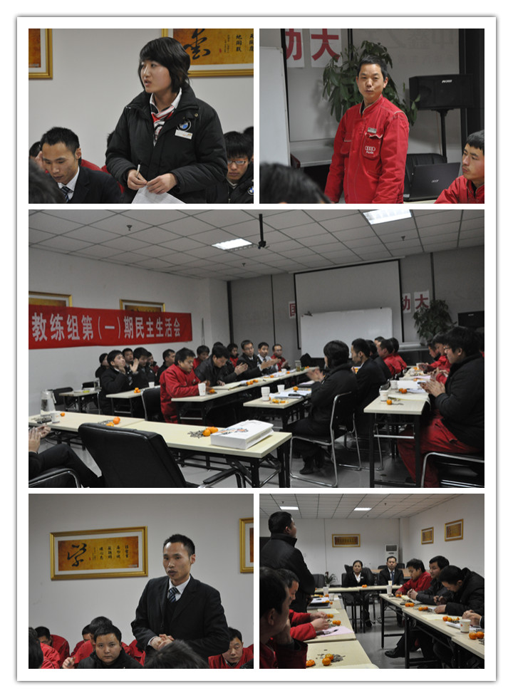 一排排摆放整齐的桌椅,精心准备的水果和瓜子,不断传来的掌声和欢呼声……1月12日晚上6点半的会议室里,中鑫之宝花园店奥迪品牌第一次民主生活会议正在这里温馨而热烈的召开。