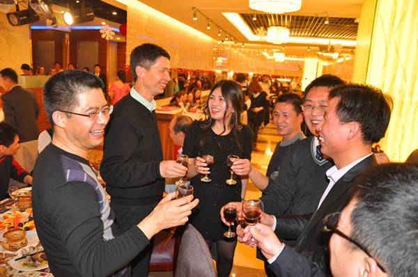 下午6点,中鑫汽车2012年迎新春晚会正式开始,老田在年会上致祝酒辞。他举起酒杯,与中鑫员工举杯共饮,把年会氛围推向高潮。