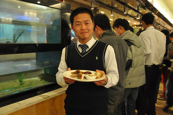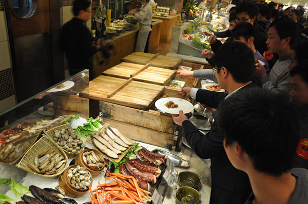 今年我们的年会在金钱豹举行,消息传来,不少朋友羡慕:你们的年会真给力!同事们更是早早就开始期盼,为此,企业发展中心的李楠还写了一篇自助餐功略发到网上。到了金钱豹,装修豪华自不必说,各样美食让人看花了眼,日式料理区的生鱼片种类繁多,入口即化,冰镇大生蚝、三文鱼还有各种各样的刺身琳琅满目。大虾“帝王蟹”味道鲜美、红酒雪耳雪梨燕窝羹喝着过瘾、鲍鱼、鱼翅、牛排、更不用说慕斯、提拉米苏、甜点和无限量供应的哈根达斯。红酒、德国百威。很多只在杂志上看过的美食,活生生的呈现在你面前。还等什么呢?在田总主持举行完举杯仪式后,大家就开动了,一时间大厅内人声鼎沸,热闹非凡。尤其是鲍鱼汤前,排满了长队。光有吃的还不行,公司还将部分节目安排在自助餐区的舞台进行表演。为大家助兴。大家一边吃着美食,饮着啤酒干红,一边和舞台上的演员互动,有的的已经在台下和着旋律舞动起来。市场部的街舞串烧更是把引爆了全场的气氛,奔放的舞蹈,动感的旋律,大家都被这种气氛所感染,舞蹈一结束,就争相与演员合影,就连季总和田总也上台和演员们进行合影。舞台附近一时被挤的水泄不通,有的甚至站在凳子上一睹为快。在表演间隙,还有抽奖环节,抽奖环节更是热闹非凡。不管是中奖的还是没中奖的,大家都是乐呵呵的,要的就是这个气氛。一时间,吃的,玩的,中奖的,全都有了!金钱豹的工作人员都连称,称没见过开年会这么热闹的。这就是中鑫汽车,工作要做的尽心尽力,玩起来也要玩的够HIGH够过瘾!