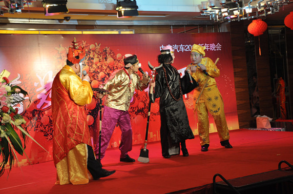 今年的年会节目:舞蹈跳的HIGH,小品演的逗、创新节目更是让人眼前一亮。不得不佩服,中鑫汽车人真的是卧虎藏龙、多才多艺呀!今年的年会节目由行政部的《鼓动心弦》开始,靓丽的姑娘们身穿盛装,在舞台上擂起了大鼓。节奏明快的鼓点,随着鼓点飞扬的长发,不时变幻的阵形,帅就一个字!广本销售部90后的姑娘们表演的《少女时代》则掀起了年会的小高潮。美女们身穿紧身T恤、热裤,伴着激情奔放的音乐,跳起了动感十足的舞蹈,引起了大家的欢呼声,90后的自信、张扬,青春四射表现的淋漓尽致。由于这个节目的精彩指数太高,后来又加演一场。市场部的扇子舞《床前明月光》,姑娘们穿着飘逸的演出服,手拿扇子翩翩起舞,收放自如,配着柔和的音乐,让大家的心也变得沉静,仿佛到了仙境一般。集团客户部《龙年牛舞》演绎的是火辣的西班牙风情。衔着玫瑰花的西部牛仔、火辣摇曳的长裙美女,天衣无缝的配合,最绝的是,美女们在舞台上直接变装,脱掉长裙,戴上牛仔们的帽子,又变成了别有风情的女“斗牛士”。技术中心的《过年救援》讲的是春节期间,面对奔驰车主的求救,4S店和中鑫之宝的不同态度。小品中车主媳妇的出场让大家几乎乐岔了气。奥迪中心的男同事郭月军以孕妇身份出现,头戴假发,绿毛衣、红秋裤。挺着大肚子,为了节目不惜牺牲本人形象,精神可嘉!而小品中中鑫之宝技师视客户为上帝的表现还得到了季总的表扬。证明我们的小品寓教于乐呀!本年会最具有创新精神,最让人震撼的是花园奔驰的《光影传说》。一张幕布,一把手电筒能做什么?花园奔驰的伙伴们硬是用它们表演了一场精彩的舞台剧。伴着满含深情的旁白,幕布出现了用手电筒光圈组成的标识,光影传说以第一人称讲述了奔驰品牌伙伴的故事,从加盟中鑫之宝到迅速成长,讲述了奔驰品牌和中鑫之宝的发展,并展望了美好未来,真情实感让人感动。创新形式让人惊叹。